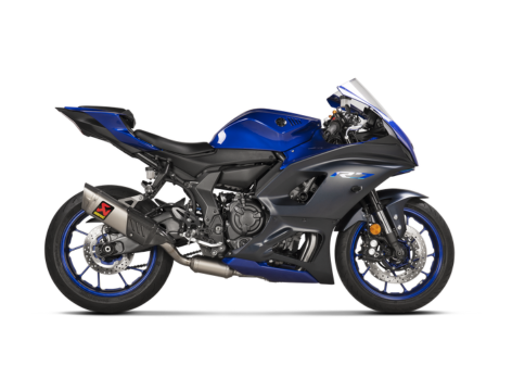 This complete exhaust system is constructed with a high-grade, lightweight titanium outer sleeve and end-cap for muffler, with a stainless-steel link pipe and headers. It weighs in at 3.0 kg lighter than the standard stock exhaust. A noise insert is included in the package because the open version of the system has no catalytic converter and was developed for use on racetracks or closed courses only. Designed to integrate with the lines of the bike, the resonator is located under the body, hidden by the lower fairings, and the muffler exits on the right side of the bike. It is finished with an eye-catching heatshield, inspired by those on the Yamaha R6 and R1. Impressive performance increases of 4.3 kW (5.9 hp) at 9,700 rpm and an added +2.9 Nm at 5,500 rpm have been achieved when tested on the Akrapovi? dyno against a standard stock exhaust. The racing sound matches the bike’s sporting credentials.