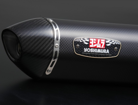 End-cap serat karbon matte bergaya "works-look" dan pelindung tumit serat karbon custom dengan desain, inovasi, dan detail terbaik khas Yoshimura.
